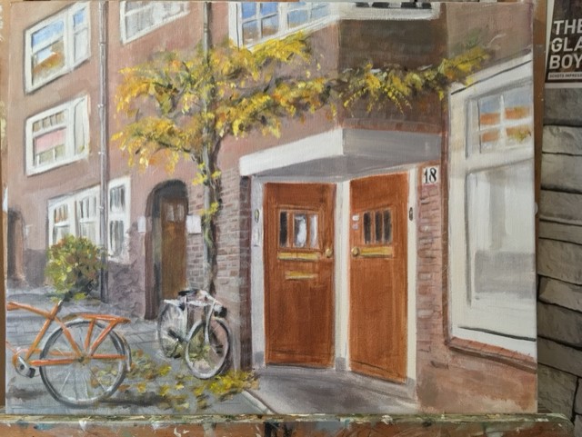 Er worden drie schilderijen getoond ” Amsterdam Rivierenbuurt” en de “Molenbeekstraat” ( acryl op linnen) het derde schilderij valt onder de categorie “Andere koek” met de titel: “Laat ze niet zo schrikken” (Inkt en pen op papier).
